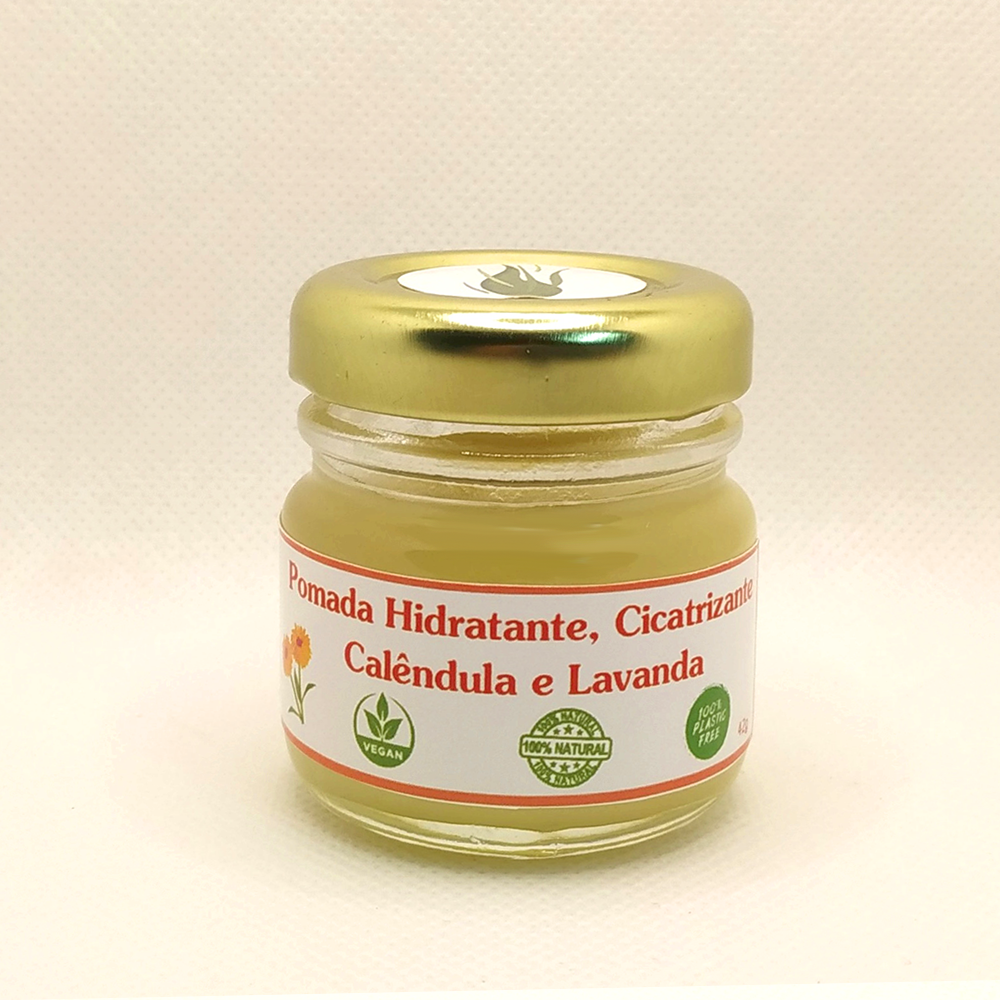 Creme Hidratante e Cicatrizante de Calêndula e Lavanda: é antifúngica, bactericida, cicatrizante e hidratante. Pode ser usada como hidratante para as mãos, pés, joelhos e cotovelos.