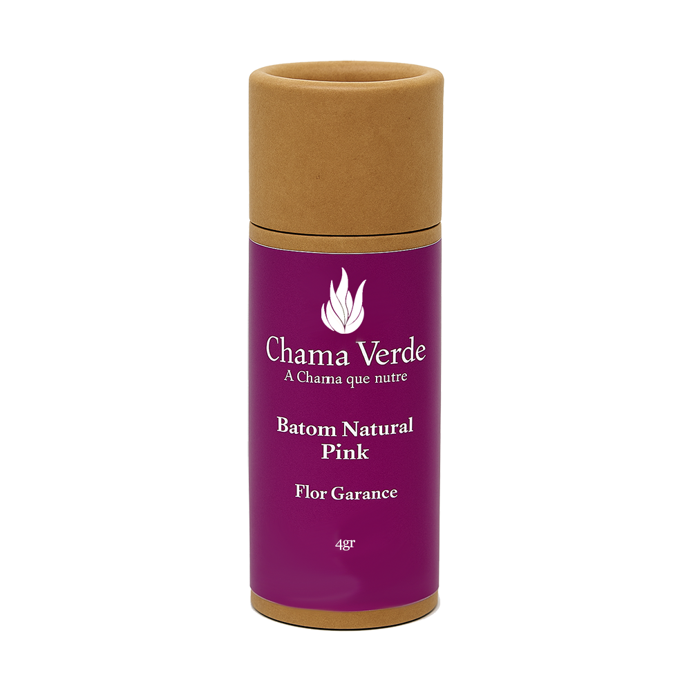 O Batom da Chama Verde® é 100% Natural, vegano, livre de cera de abelha, petrolatos, óleos minerais, microplásticos, aromas, chumbo, cádmio ou outros metais ou corantes sintéticos.