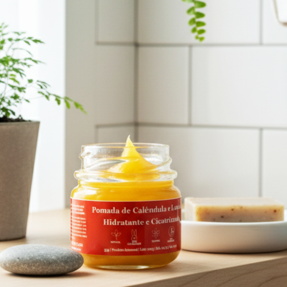 A Pomada Multifuncional de Calêndula e Lavanda da Chama Verde é antifúngica, bactericida, cicatrizante e hidratante.